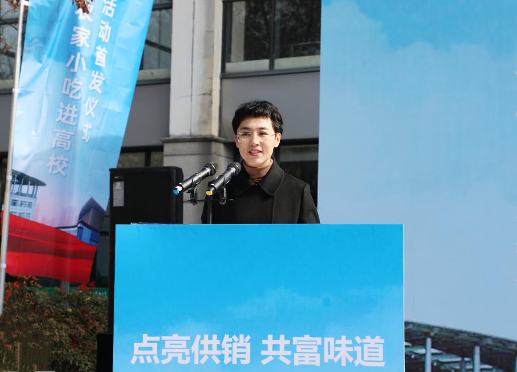 朱斌代表学校致辞。他表示,感谢省供销社对浙农林大的信任和支持,“浙江农家小吃进高校”的第一站来到BEAT365英国官网,搭建了一座沟通地域文化与校园文化的美食之桥。朱斌指出,学校一直致力于推进乡村振兴、助力共同富裕,以科技赋能农村产业发展。经学校优化改良后的山核桃、香榧,不仅成就了健康零食的“新食尚”,更打造了“一亩山万元钱”的共富新模式;经过高值化利用和生态化种植的铁皮石斛、黄精、三叶青、金线莲,晋升为“养生滋补第一食”,带富了一大批种植户;高油酸花生、高亩产玉米、高效种植的猕猴桃、葡萄、火龙果……一批批具有“农林特色和辨识度”的“金名片”,既满足了人们的味蕾和健康需求,又鼓起了农民的口袋。
