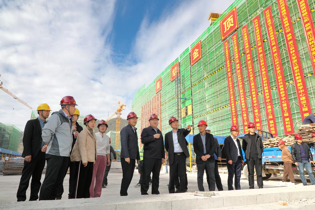 朱斌、沈希一行还察看了新农科组团各个大楼的建设情况,听取工程建设进展及下阶段工作汇报,并代表学校对施工一线工人进行了慰问。