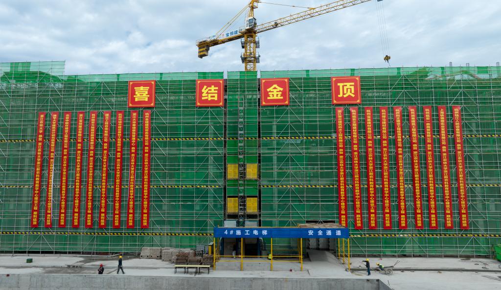 浙江新农科教育教学中心建设工程是省“重点建设工程”、“千项万亿工程”,新建总建筑面积62645平方米,其中地上建筑面积49995平方米,地下建筑面积12650平方米,总投资33165万元。该项目从6月30日开工建设,9月28日1#楼结顶至12月9日,6幢楼依次结顶,标志着浙江新农科教育教学中心建设工程将全面转入二次结构施工、安装和装饰装修阶段。该建设工程预计2024年8月底竣工。