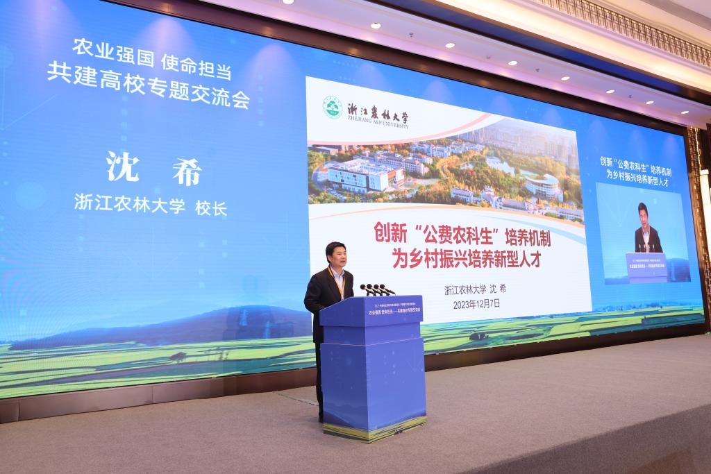 会上,沈希作了题为《创新“公费农科生”培养机制为乡村振兴培养新型人才》的报告。从创新体制机制,打造政校企育人共同体;重塑人才培养体系,培养高素质应用型人才;厚植学生“三农”情怀,赋能乡村全面振兴等三个方面交流了学校“公费农科生”培养工作。农业农村部科学技术司负责人在大会讲话中充分肯定了学校着力培养高素质基层农业人才的做法和经验。