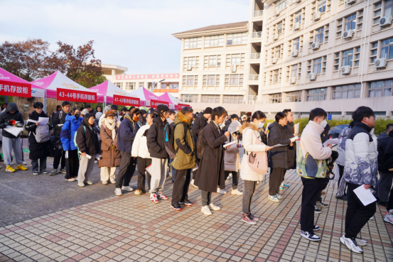 研考期间,恰逢杭州低温寒潮天气,研考首日气温更是跌破-6℃。针对特殊天气情况,考点在考前加强对考场教室供电、空调、开水炉等的自查与维护,在考生主要用餐食堂为考生免费提供暖心姜汤和寓意成功的橙子。此外,在考场区域配备足量流动监考和志愿者,及时回复考生咨询、解决考生突发情况,学校尽心贴心暖心的组考服务受到考生点赞好评。