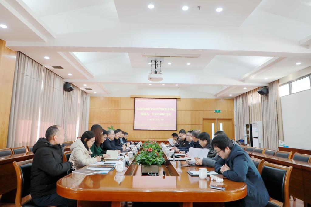 12月27日,河南牧业经济学院党委书记穆瑞杰、副校长边传周一行来校调研交流。校党委书记朱斌、副校长吴家胜出席座谈会。
