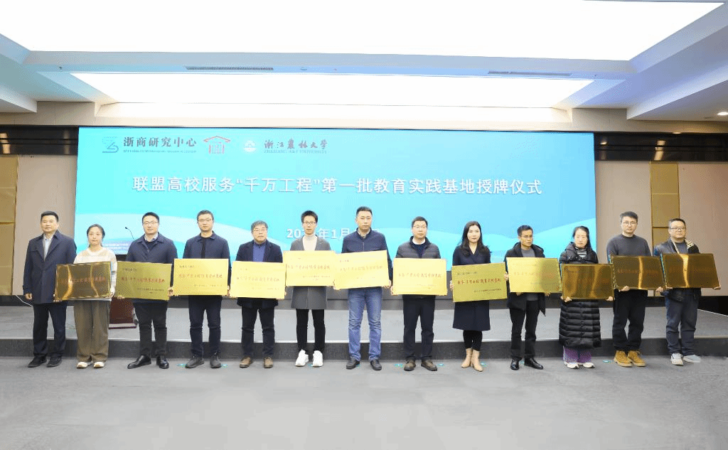 会上,进行了联盟高校服务“千万工程”的第一批教育实践基地授牌仪式。沈希为浙江大学、中国美术学院等12所高校代表授牌。