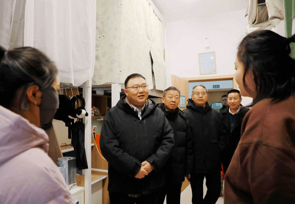 在学生宿舍,朱斌一行与留校学生亲切交流,悉心询问学生的假期安排、学习生活等情况,勉励同学们要继续保持学习的热情,合理规划假期,充实自己,同时要保持与家人的密切联系,遇到困难及时联系学校、老师。同时,他要求相关部门做好留校学生的安全、生活保障工作,确保让同学们在学校度过一个平安、喜乐、祥和的春节。