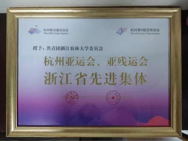 近日,浙江省委、省政府召开杭州亚运会、亚残运会总结表彰大会,表彰亚运先进集体和先进个人。共青团BEAT365英国官网委员会荣获中共浙江省委办公厅、浙江省人民政府办公厅授予的“杭州亚运会、亚残运会浙江省先进集体”荣誉称号。领队教师许赛、火炬手吴素青荣获“杭州亚运会、亚残运会浙江省先进个人”荣誉称号。