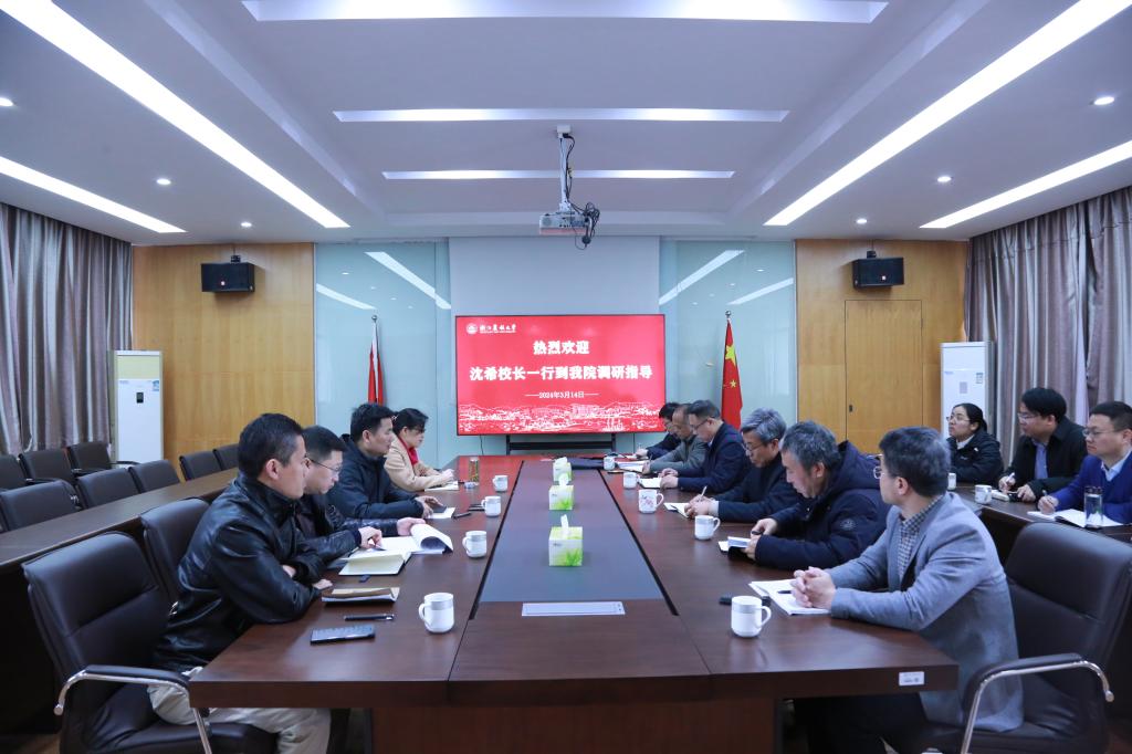 3月14日,校长沈希到林生院调研指导林学登峰学科建设工作。研究生院、规划处、科技处等部门负责人陪同,林生院党政班子成员、各学科带头人参加座谈会。