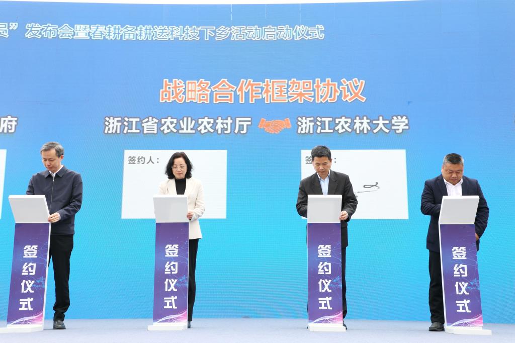 三月春风暖,大地共“耕”新。3月26日上午,2024年浙江省“最美浙江人·最美农技员”发布会暨春耕备耕送科技下乡活动启动仪式在绍兴市上虞区举行。校长沈希应邀出席活动,并代表学校与省农业农村厅签订战略合作协议。