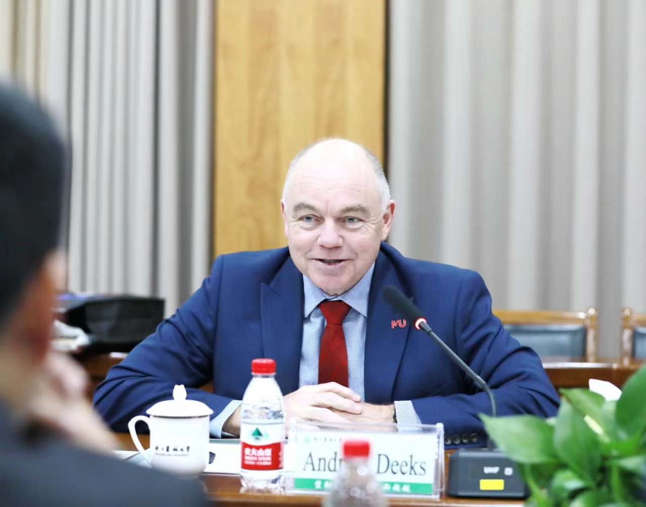 Andrew Deeks对学校的接待表示感谢,并介绍了莫道克大学的研究院所、院系设置、教学设施和科研重点。他希望双方抓住机遇,进一步拓宽和加深合作领域,如莫道克大学的校训所言,“共创美好未来”。