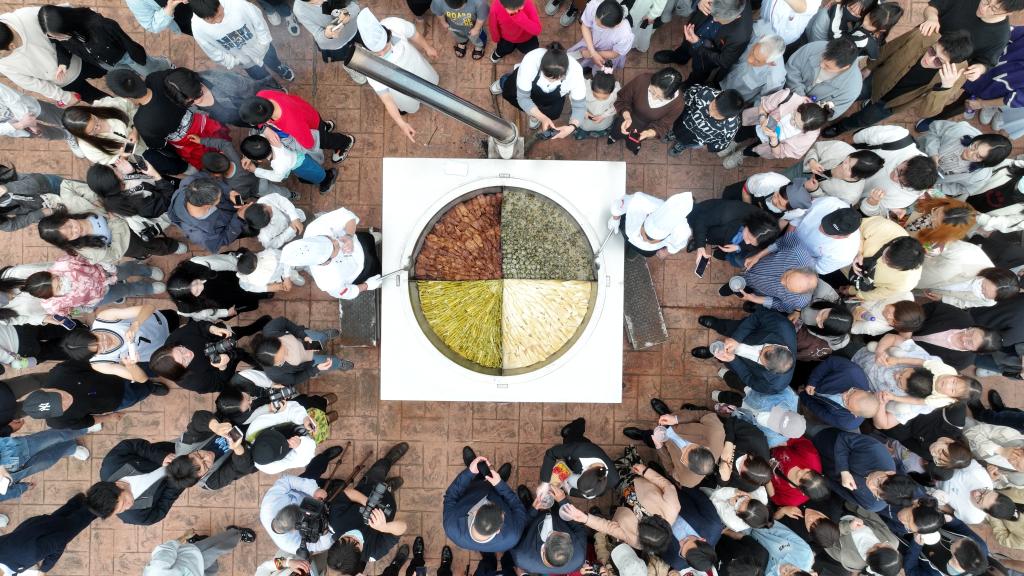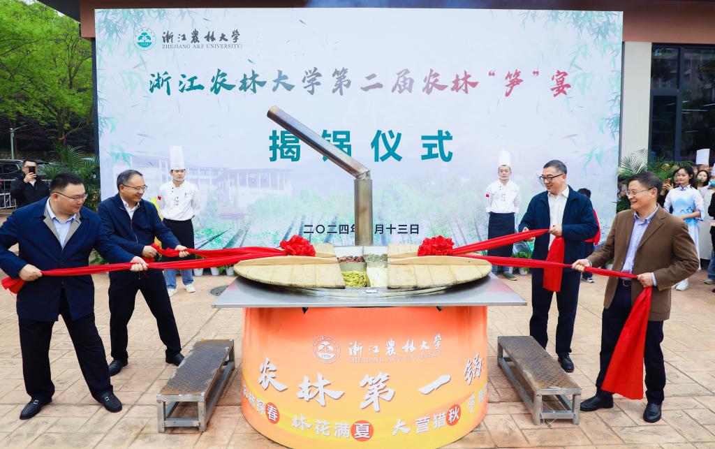 朱斌、胡祖吉、单军及省餐饮协会会长沈坚为“农林第一锅”揭锅。