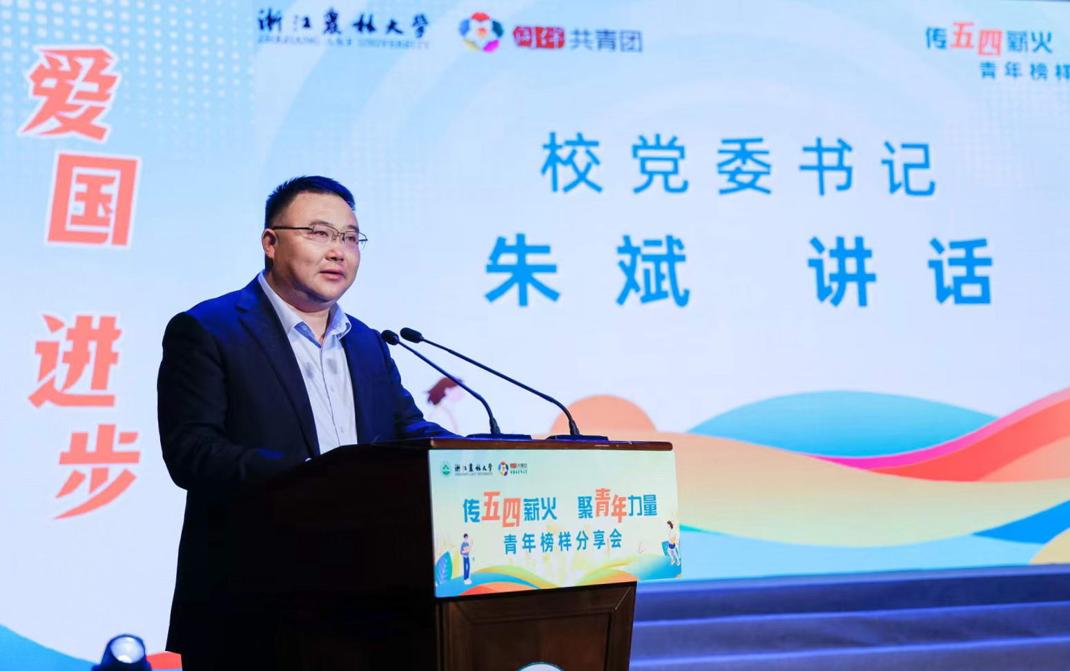朱斌代表学校党委,向各级团组织、共青团干部、团员青年们致以节日的问候,向长期以来关心支持共青团工作、辛勤培育青年学生的老师们表示衷心的感谢。