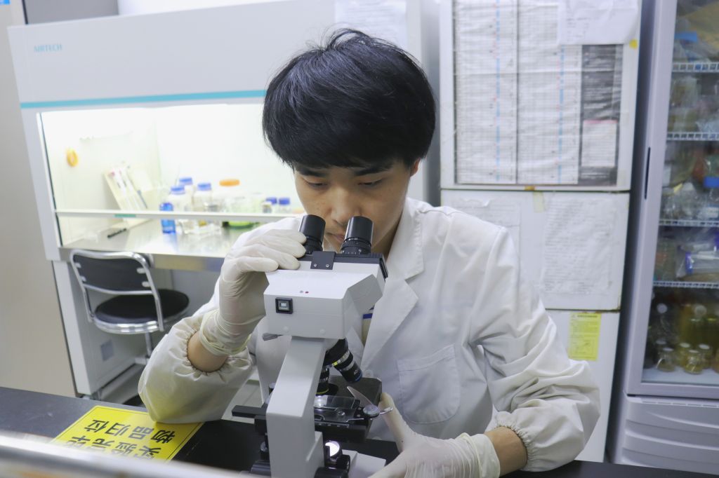 学7二楼的实验室里,林学223班的江菲正在进行扩藻和接藻。对她而言,暑假是个难得的实验机会,因为一开始培养的藻类总是死掉,一直培养到学期末才终于有存活下来的,正好利用暑假这个时间继续推进研究。超净台、离心机、显微镜,成为了她这个暑假里打交道最多的“朋友”。
