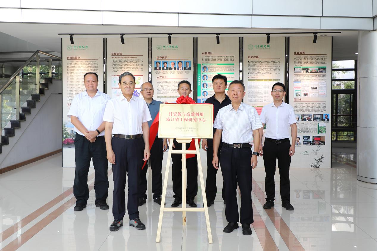 蒋剑春院士与吴家胜为竹资源与高效利用浙江省工程研究中心进行揭牌。