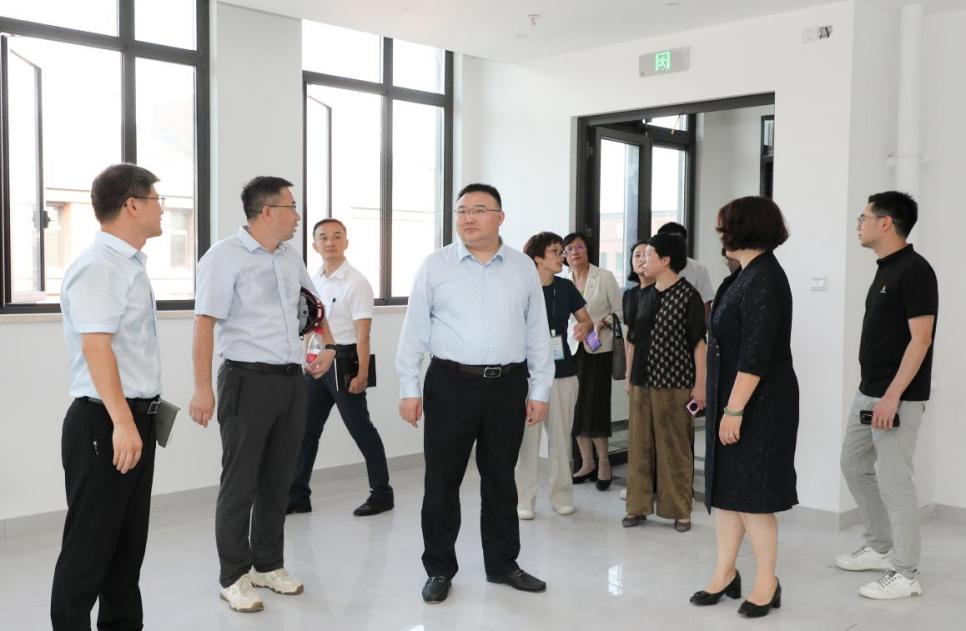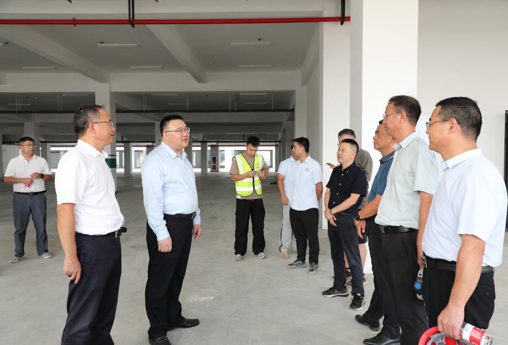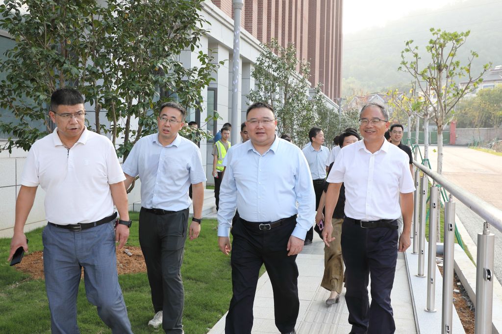 在新农科教育教学中心建设工程项目现场,朱斌一行听取了项目进展和验收工作安排汇报,实地查看了各学院楼、交叉中心、本科教学中心等各幢建筑的内部装饰、设施设备和周边配套道路、景观绿化等建设情况,并详细了解了验收准备等工作。