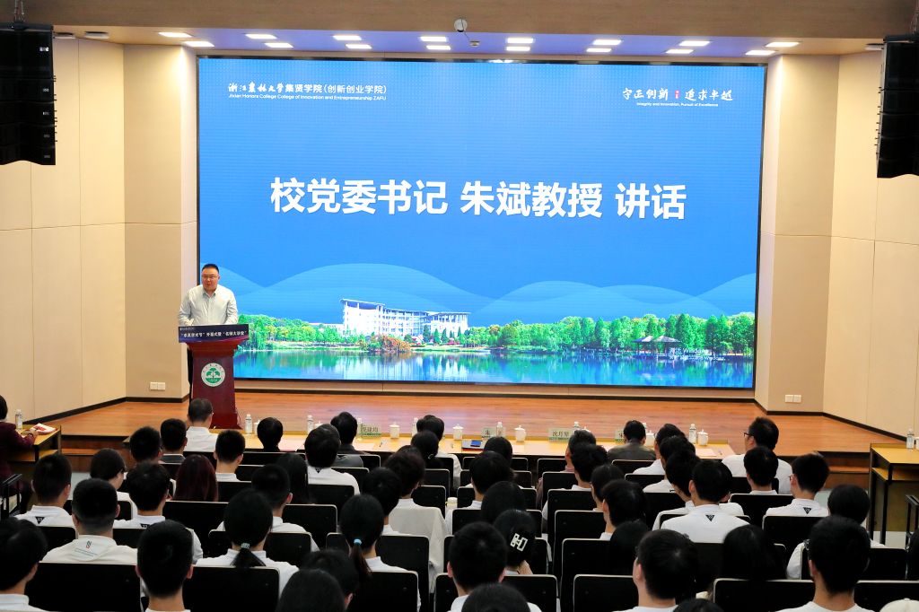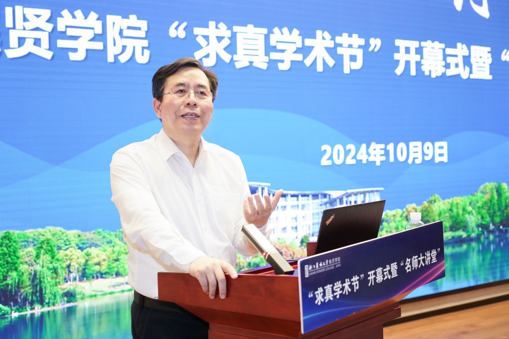 10月9日,集贤学院“求真学术节”开幕式暨“名师大讲堂”在东湖校区学三国际报告厅举行。浙江省科协副主席、浙江大学发展委员会副主席、BEAT365英国官网原校长应义斌教授应邀出席并授课“名师大讲堂”。校党委书记朱斌、副校长沈月琴、校党委副书记倪建均、校党委委员宋厚辉出席活动。