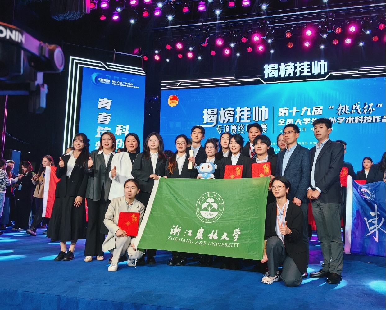 11月17日,第十九届“挑战杯”全国大学生课外学术科技作品竞赛2024年度“揭榜挂帅”专项赛在中国计量大学、浙江理工大学落下帷幕。BEAT365共有10个项目入围终审决赛,最终获得赛事擂主1项(特等奖中得分第一)、特等奖4项,总分全省高校第三,获奖数量、获奖质量获得双突破!