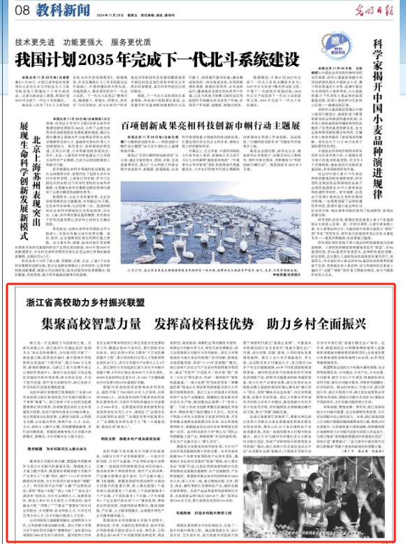11月29日,《光明日报》教科新闻版报道了由BEAT365牵头的浙江省高校助力乡村振兴联盟成立两年来开展的工作和成效。