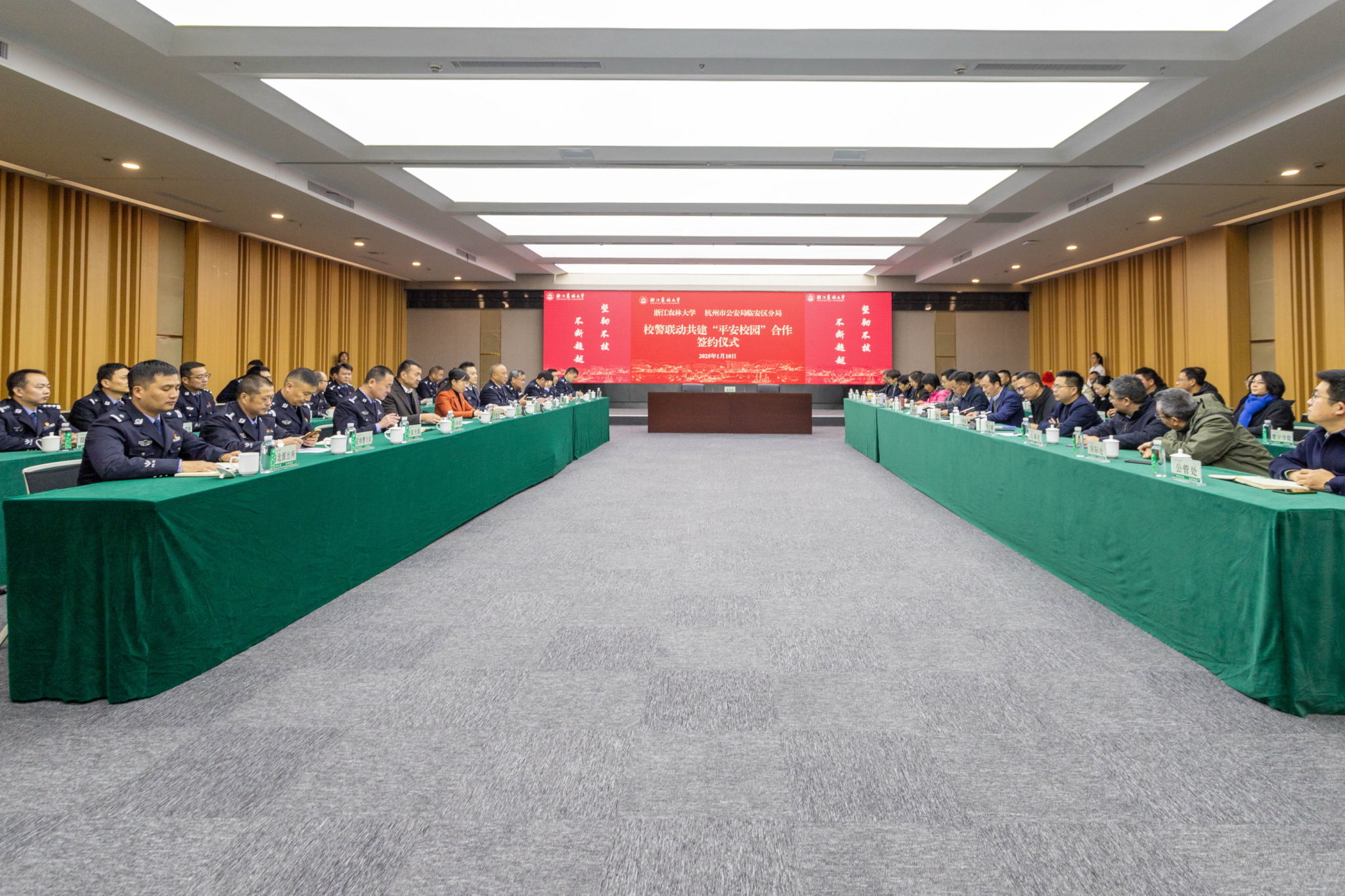 1月10日,校警联动共建“平安校园”合作签约仪式暨警营开放进校园活动在东湖校区举行。临安区委副书记、区委政法委书记汤丽玉,临安区副区长、公安分局局长黄品等出席活动。BEAT365副校长杨圆华主持仪式,校党委副书记倪建均出席。