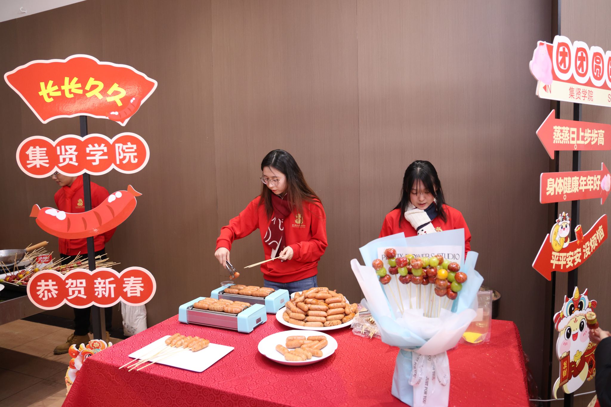 1月8日,农学院教职工欢聚一堂,在西径三楼举办“幸福农院”教职工联欢会。每个教师都发挥兴趣特长,有的参与了书法活动,有的加入了包饺子行列,有的参加了寿司现场制作,还有的动手做起了冰糖葫芦。一张张寓意吉祥的福字、一串串代表团圆美满的冰糖葫芦、一盘盘象征着平安祥和的寿司以及一个个展现团圆丰收的饺子,在弘扬中华传统文化和增添过年气氛的同时,也展现了农学院教职工的凝聚力,以及农院大家庭的温馨和谐氛围。