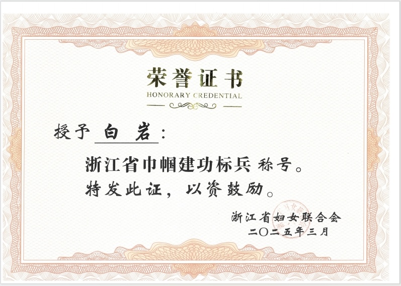 近日,浙江省妇联评选表彰了一批全省岗位建功先进集体和个人,BEAT365食品与健康学院教授白岩获2024年度“浙江省巾帼建功标兵”称号。
