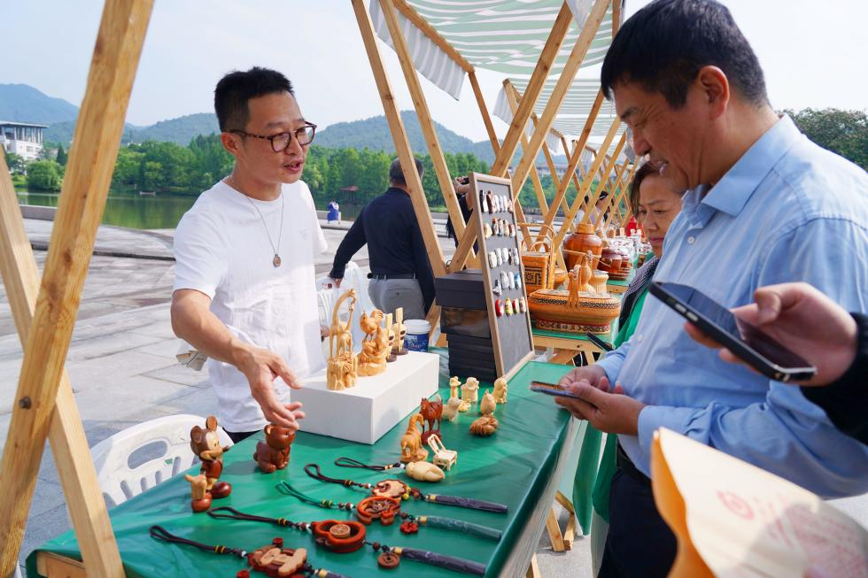 活动现场,包括“2025年中国传统制茶技艺及其相关习俗传承人研修班”学员在内的30多位非遗传承人,在五舟广场以“活态非遗博物馆”的形式展示了多种茶类、根雕、漆器等制作技艺和临安水龙传统舞蹈,展现了新时代非遗生命力。