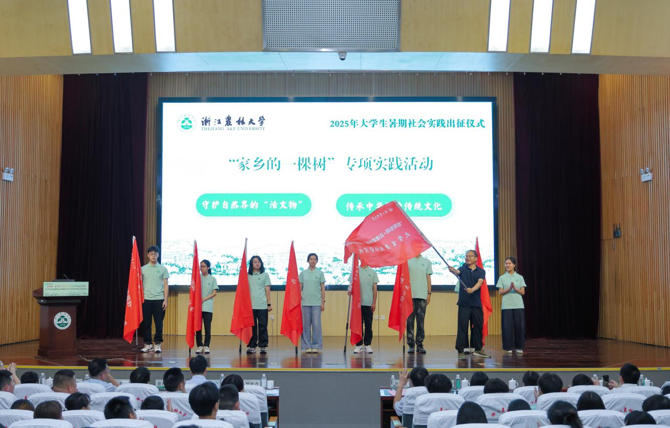 出征仪式上发布了“近乡情更浓”宣讲服务、“家乡的一棵树”古树名木寻访、“科技文化双助力”特派员服务、赋能“两山”20周年等五个专项实践活动,并举行了专项实践团队出征授旗仪式。