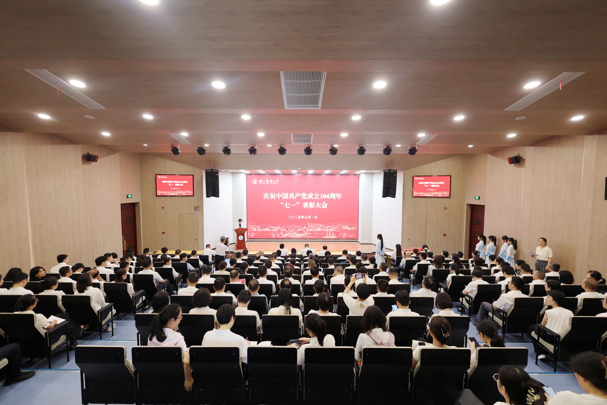 7月1日上午,学校庆祝中国共产党成立104周年暨“七一”表彰大会在东湖校区国际报告厅隆重举行。校党委书记朱斌出席大会并讲话。校党委副书记施美红主持。校党委班子成员出席会议。