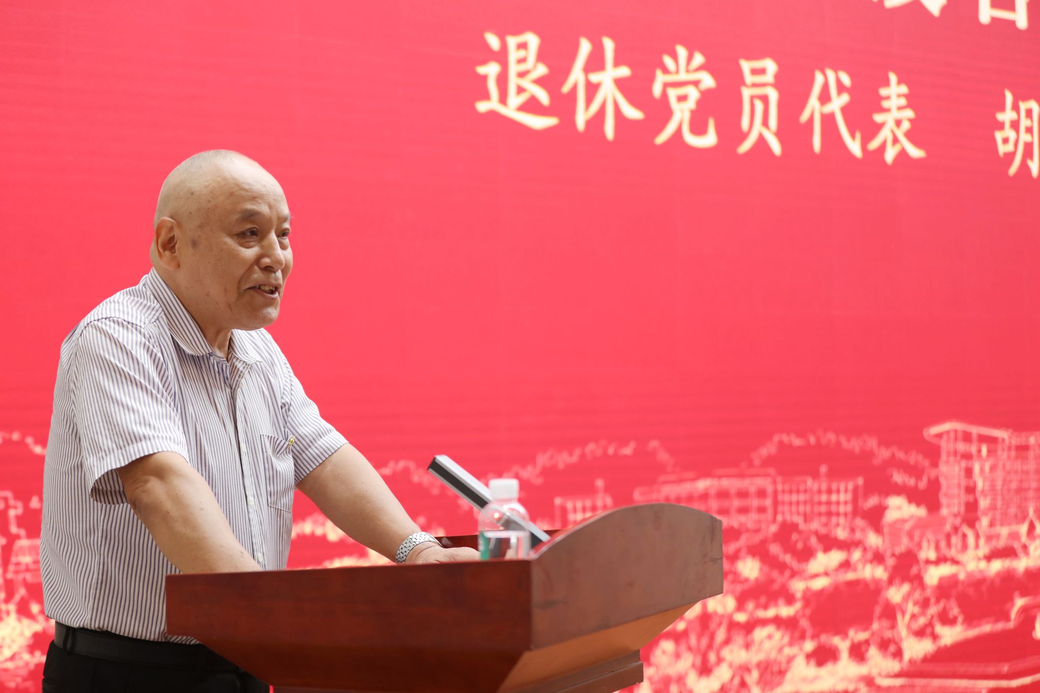 退休党员代表胡建平、二级党组织书记代表郑炳松、党支部书记代表李永夫、教师党员代表张金凤、学生党员代表王艳分别作了发言。