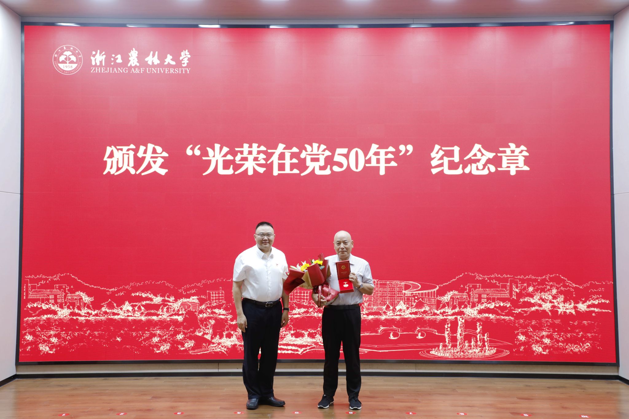 光荣在党50年纪念章获得者:胡建平、李国臣