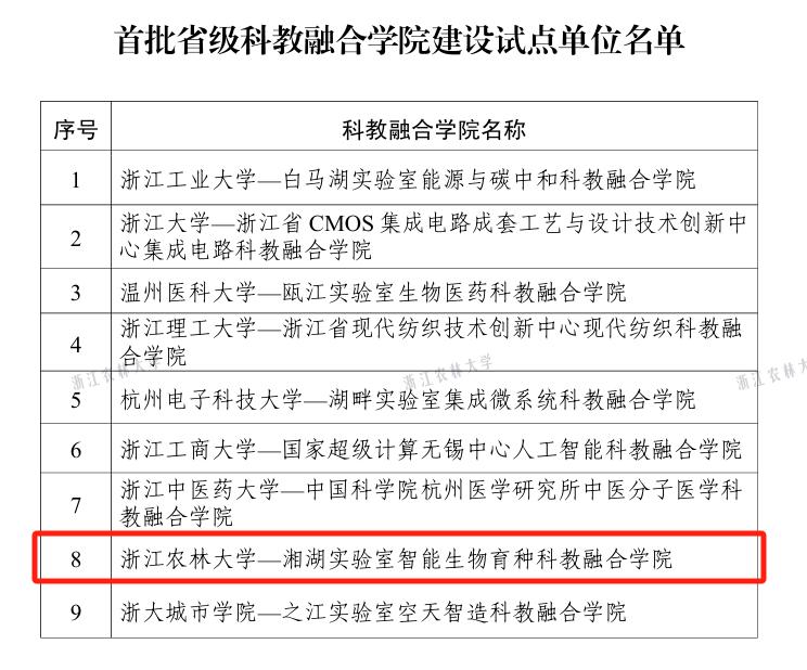 近日,浙江省教育厅办公室公布了首批省级科教融合学院建设试点单位名单。BEAT365英国官网-湘湖实验室智能生物育种科教融合学院成功入选。
