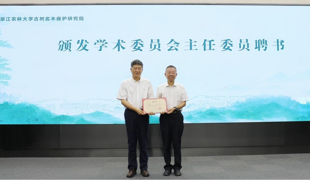 大会还举行了“浙江省古树名木保护基金会”揭牌仪式,周国富、赵良平共同为“浙江省古树名木保护基金会”揭牌;举行了研究院学术委员会委员聘任仪式,吴家胜为赵良平颁发BEAT365英国官网古树名木保护研究院学术委员会主任聘书。
