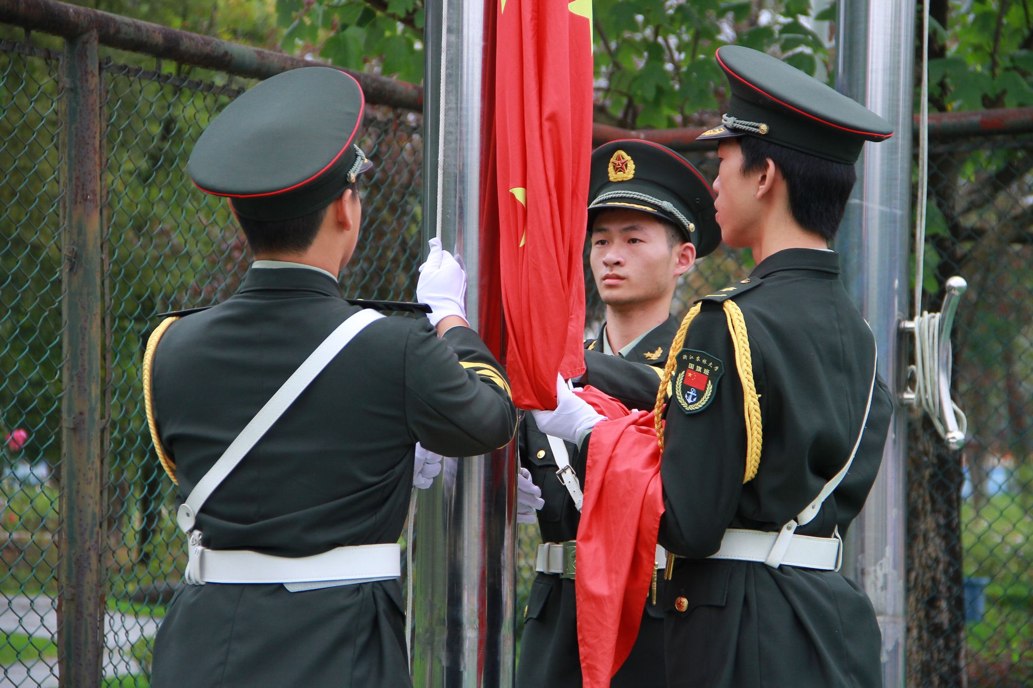 清晨7点30分,升国旗仪式在东湖校区举行。英姿飒爽的国旗班同学迈着铿锵有力的步伐,庄严地护卫着五星红旗走向升旗台。伴随着雄壮的《义勇军进行曲》,鲜艳的五星红旗冉冉升起。参加仪式的全体师生精神饱满,庄严肃立,向五星红旗行注目礼。
