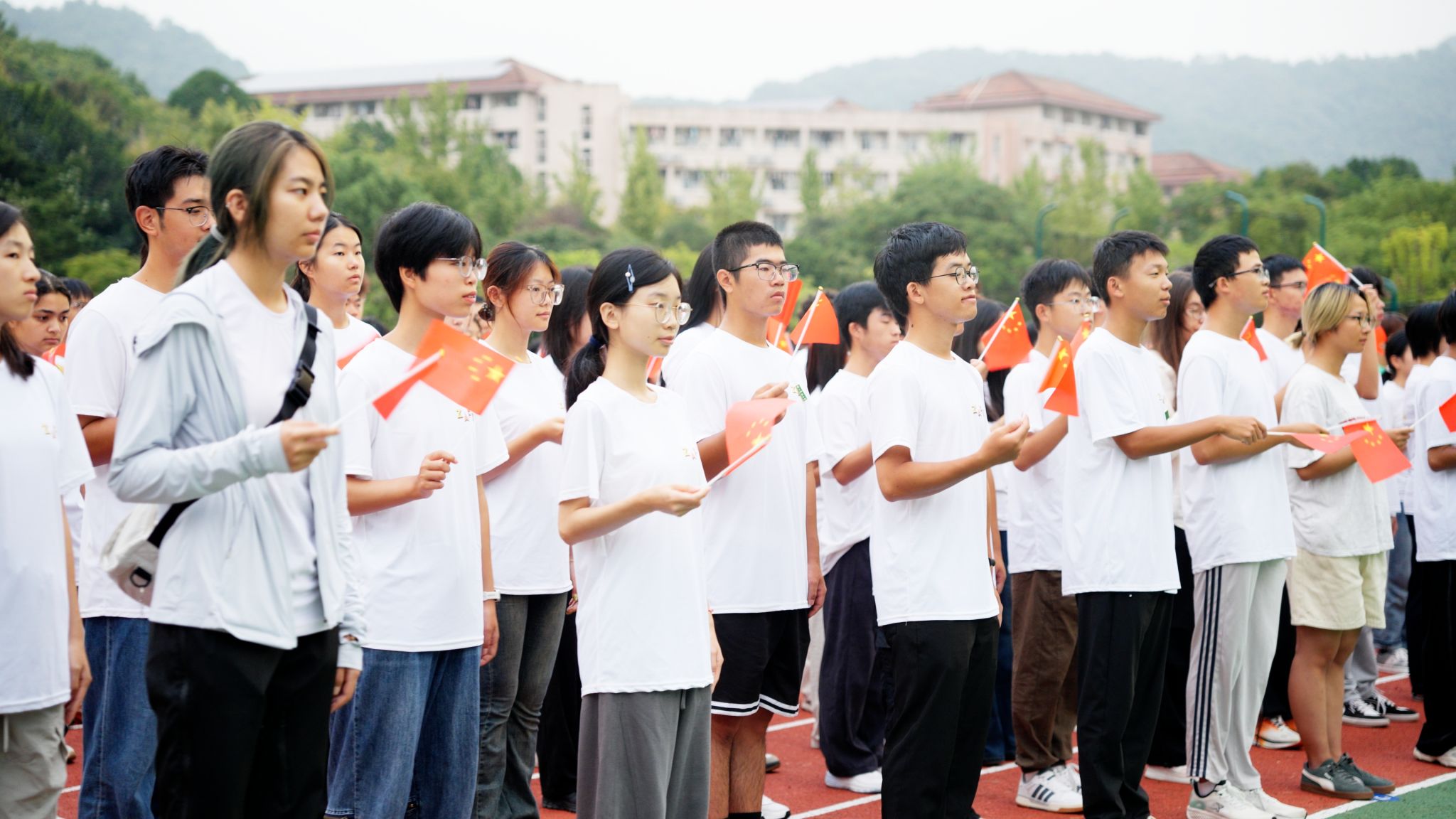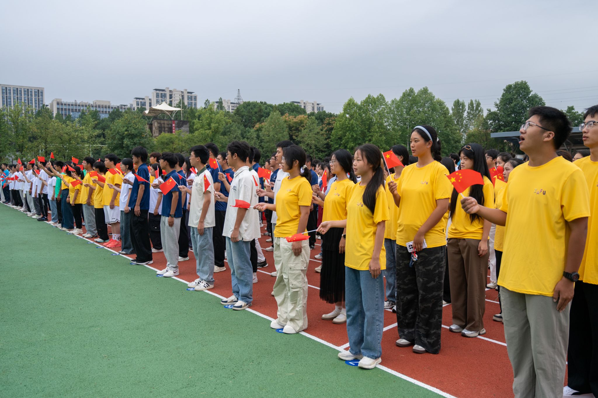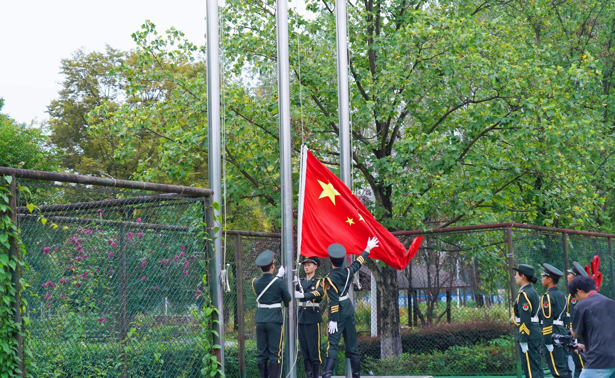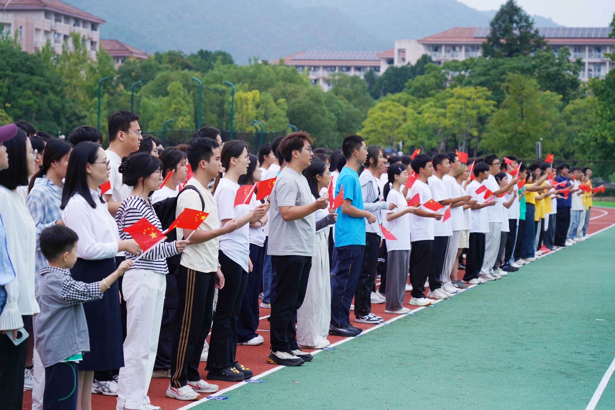 “我和我的祖国,一刻也不能分割”,仪式结束后,师生们齐声高唱《我和我的祖国》,表达对祖国的深切热爱和最美好的祝愿,祝愿祖国更加繁荣富强,人民生活更加幸福美好。