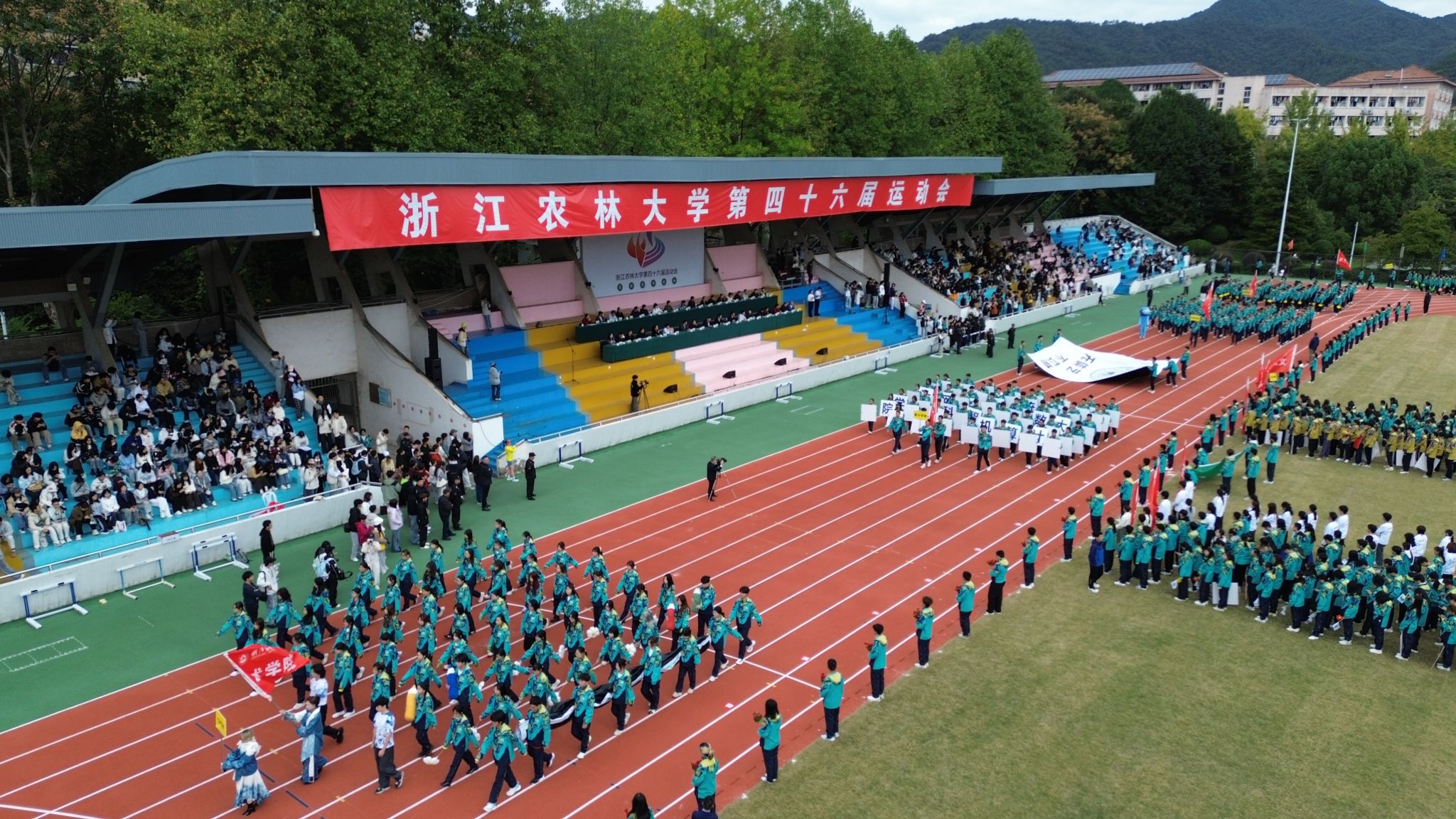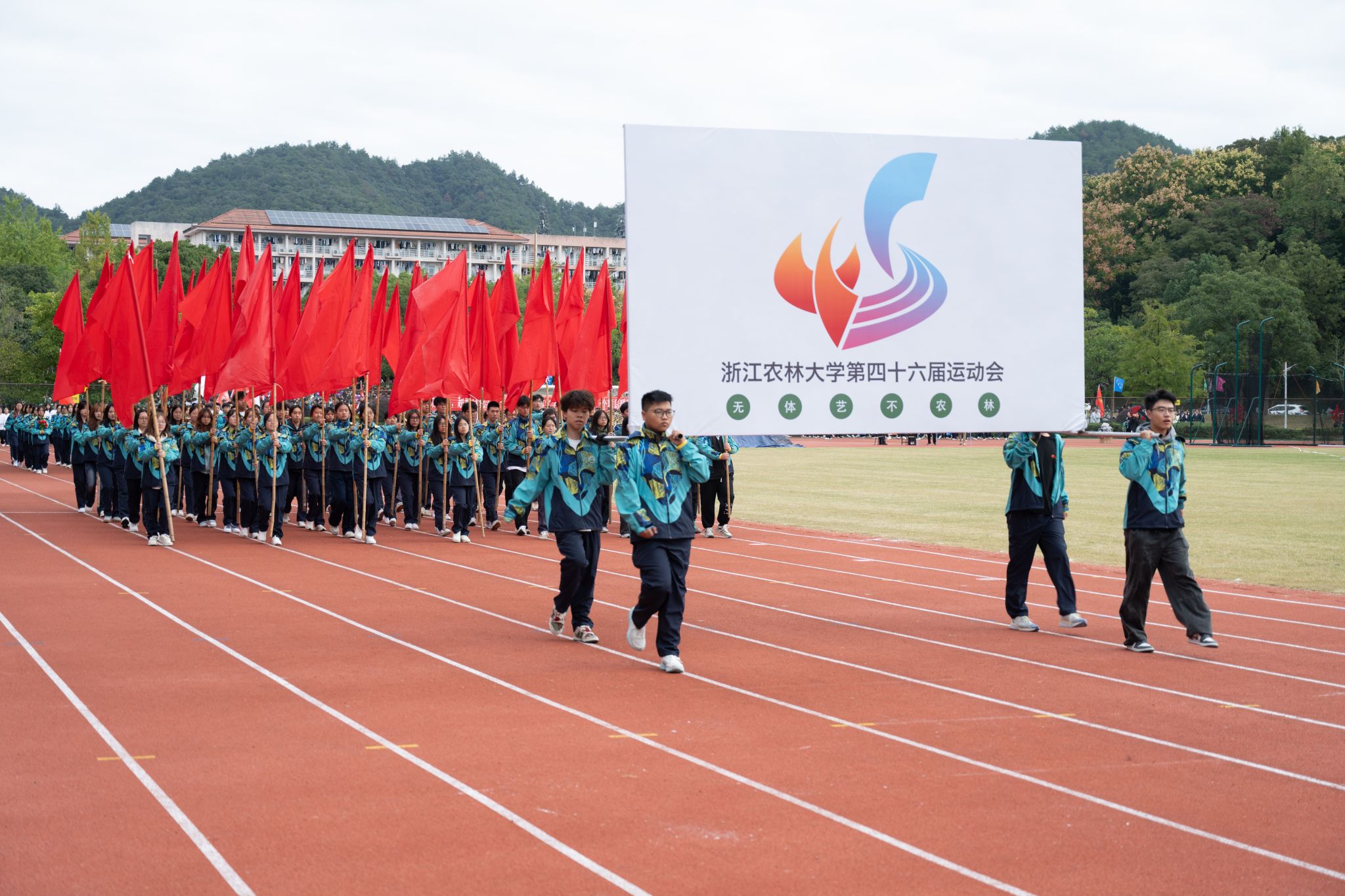 朱斌表示,学校举办运动会也是在践行一种价值观——关于健康、关于拼搏、关于集体、关于成长,希望大家凝聚奋进力量,激发昂扬斗志,用最饱满的热情、最灿烂的笑容,共同书写属于浙农林大人的运动新篇章。