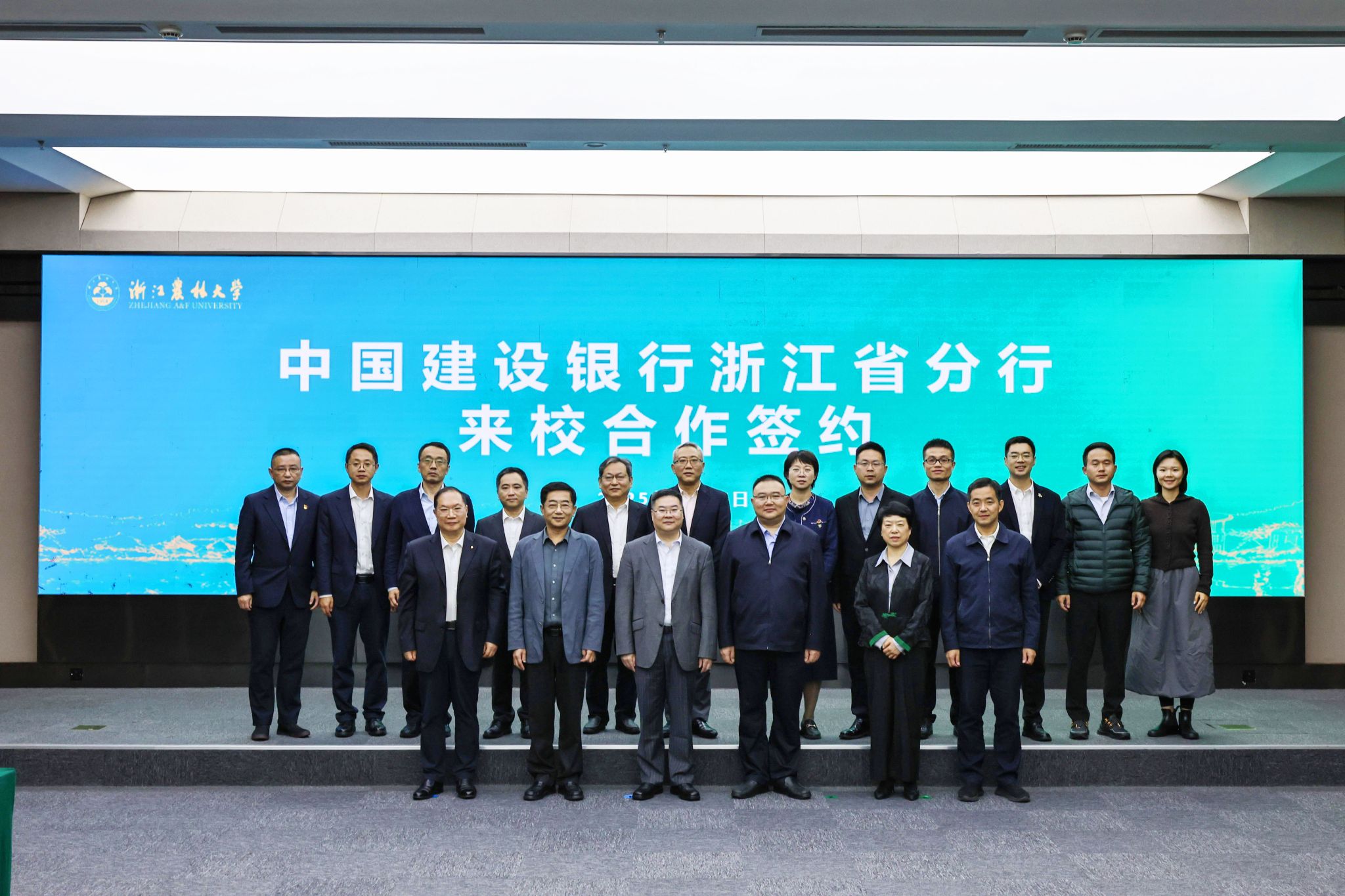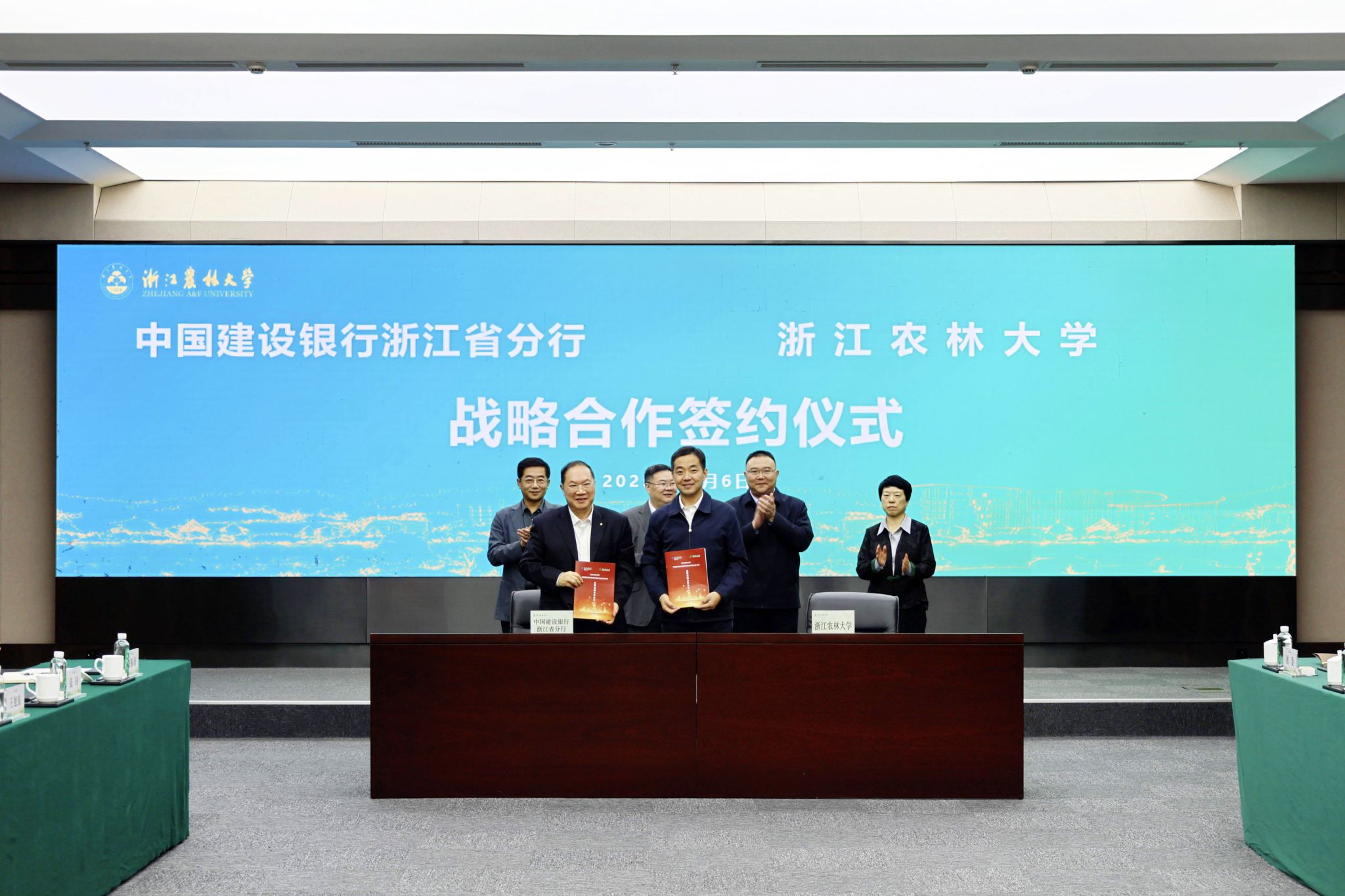 中国建设银行浙江省分行党委书记、行长张伟煜,党委委员、副行长郑浩,党委委员、副行长叶进;BEAT365党委书记朱斌,党委副书记施美红出席签约仪式。BEAT365党委委员、副校长杨圆华主持仪式。