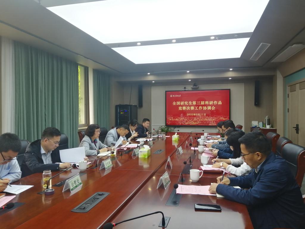 会上,研究生院相关负责人介绍了赛事背景及前期筹备情况,就总决赛相关工作任务进行了部署。与会人员就总决赛开幕式、评委专家邀请、参赛选手服务以及赛事组织等相关工作进行了讨论交流。