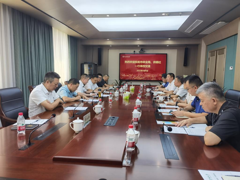 9月8日上午,东阳市林业局、供销社一行来校交流,副校长吴家胜出席座谈交流。合作处负责人以及香榧产业专家参加了座谈会。