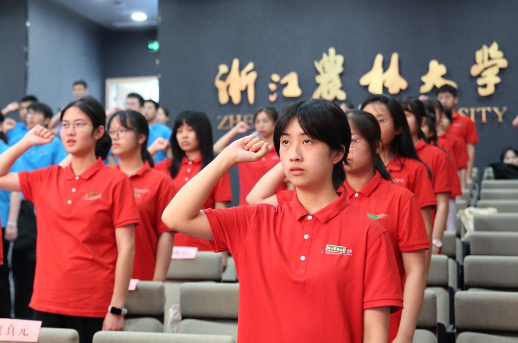 教师代表、新农科求真实验班221班荣誉班主任曾为,在校生代表、新文科求真实验班201班阙晨超,新生代表、新工科求真实验班221班庄园同学先后发言。2022级求真实验班全体新生进行了集体宣誓。