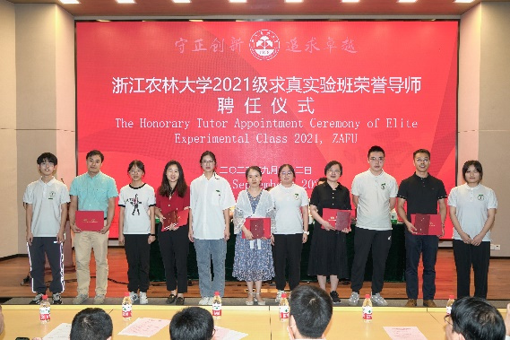 经过师生双向选择,共有52位教师受聘为2021级求真实验班荣誉导师。主席台领导为导师颁发聘书。学生分批上台行拜师礼,呈传习录,并集体诵读《拜师表》。相关学院负责人、导师代表和2021级求真实验班全体学生参加了聘任仪式。