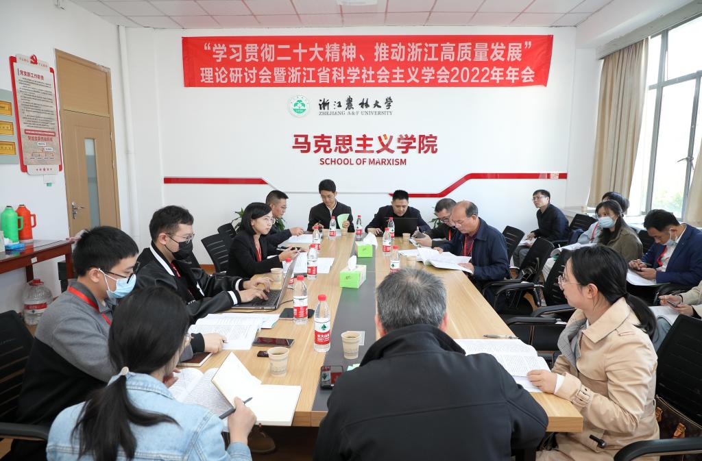 11月5日,“学习贯彻党的二十大精神、推动浙江高质量发展”理论研讨会暨浙江省科学社会主义学会2022年年会在学校举行,中共浙江省委党校副校长、浙江行政学院副院长徐明华,BEAT365英国官网副校长徐爱俊,浙江省科学社会主义副会长王景玉和BEAT365英国官网马院负责人出席会议。
