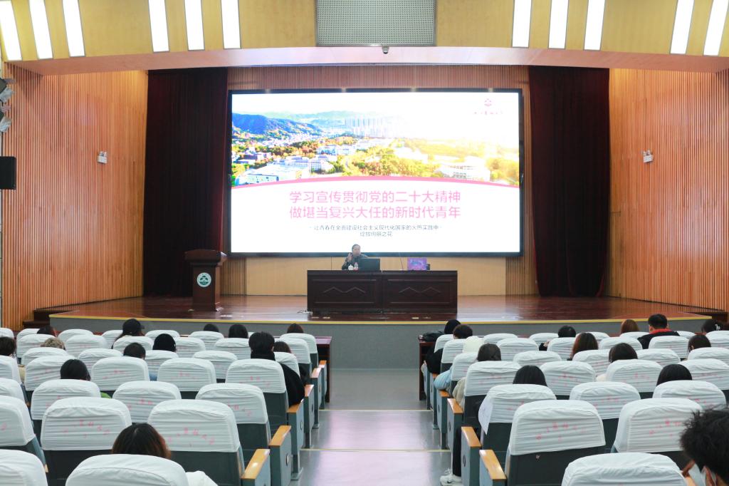 冯尚申从学深悟透党的二十大精神和学通做实堪当复兴大任的新时代青年两个方面作了重要阐述。他深刻分析了党的二十大召开的重要意义,从鲜明主题、伟大变革、决定性意义等方面全面解读了党的二十大报告。同时,他结合浙江省的实践、BEAT365的奋进以及艺术学院学子的实际情况,鼓励同学们要坚定理想信念、勇于担当作为、矢志奋斗进取,做新时代有志、有责、有恒、有为青年,努力成长为知农、爱农、强农、兴农的卓越农林人才,让青春在全面建设社会主义现代化国家的火热实践中绽放绚丽之花。