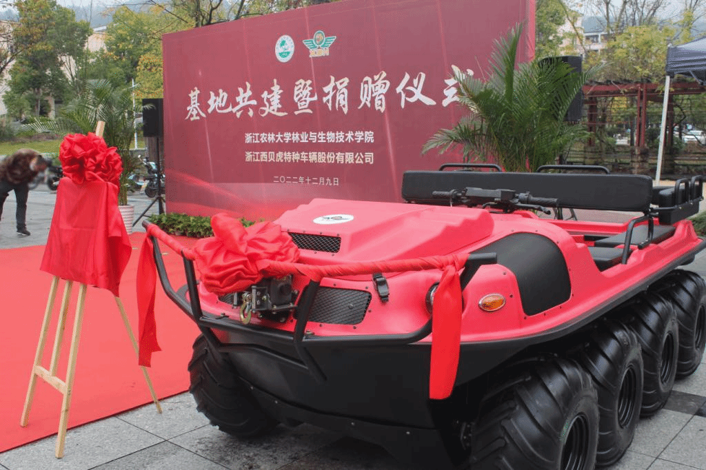据介绍,浙江西贝虎特种车辆股份有限公司向学校捐赠两辆水陆两用全地形车,将为人才培养提供良好的实践平台,学院将充分利用这个平台,加强学生创新思维和创新创业能力的培育。