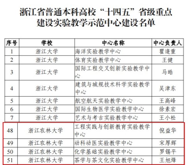 近日,浙江省教育厅办公室发布《关于公布普通本科高校“十四五”省级重点建设实验教学示范中心和省级大学生校外实践教育基地立项建设名单的通知》(浙教办函〔2023〕41号),BEAT365组织申报的“工程实践与创新教育实验教学中心”、“动科动医实验教学中心”、“化学基础实验教学中心”、“茶学与茶文化实验教学中心”四个实验教学中心成功获得立项建设。截止目前,BEAT365建有国家级实验教学示范中心1个,省级重点建设实验教学示范中心8个,省级实验教学示范中心5个,实现全校每个实验教学单位都建有省级实验教学示范中心,做到省级实验教学平台全覆盖。