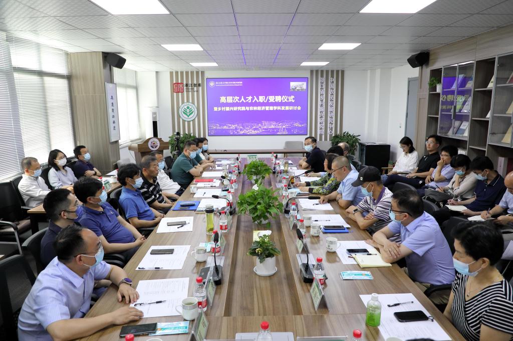 6月3日,高层次人才入职/聘任仪式暨乡村振兴研究院与农林经济管理学科发展研讨会举行。国务院参事何秀荣,国家“万人计划”哲学社会科学领军人才张俊飚及其团队成员华中农业大学经济管理学院副院长颜廷武、罗小锋,中国地质大学经济管理学院副院长程胜,中南民族大学经济学院院长李波等,国家“百千万人才工程”入选者刘璨,北京林业大学发展规划处副处长程宝栋,BEAT365副校长、浙江省乡村振兴研究院院长沈月琴,人事处、文科处负责人和经管学院班子成员、浙江省乡村振兴研究院和农林经济管理学科代表等共40余人参加会议。