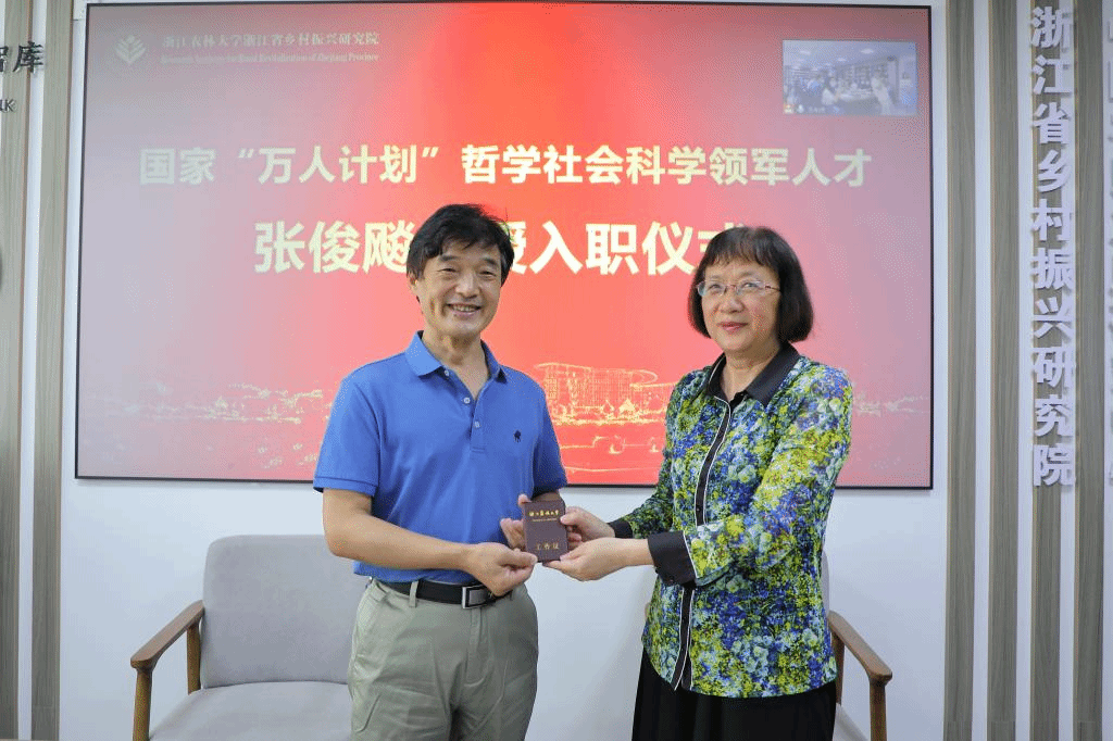 会上,人事处与张俊飚签订了协议。沈月琴为张俊飚颁发了工作证并佩戴校徽,同时为刘璨颁发了特聘教授证书。