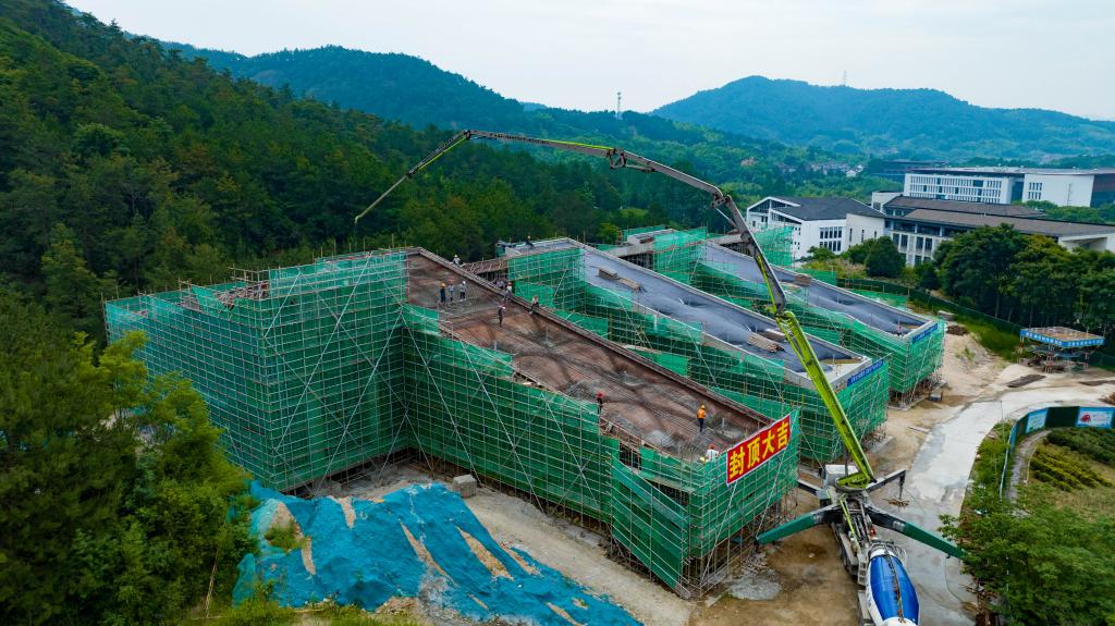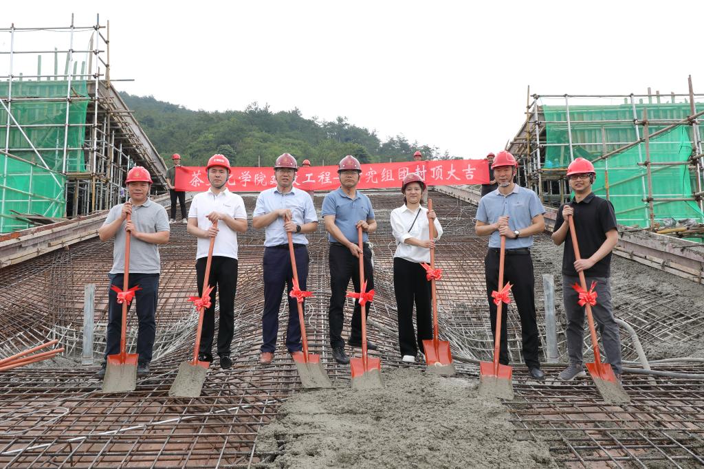 胡祖吉代表学校向捐赠方代表、施工、设计和监理等各参建单位表示感谢。他表示,茶文化学院建设工程研究组团项目建设是学校“十四五”发展的重要举措。主体结构结顶是建设过程中的重要节点,标志着项目建设已经取得了阶段性进展。希望在今后的施工过程中,再接再厉,进一步严控质量、确保品质,在安全措施到位的基础上继续抢抓工期,尽快完工交付。他还对项目后期空间布置及优化提出了相关建议。