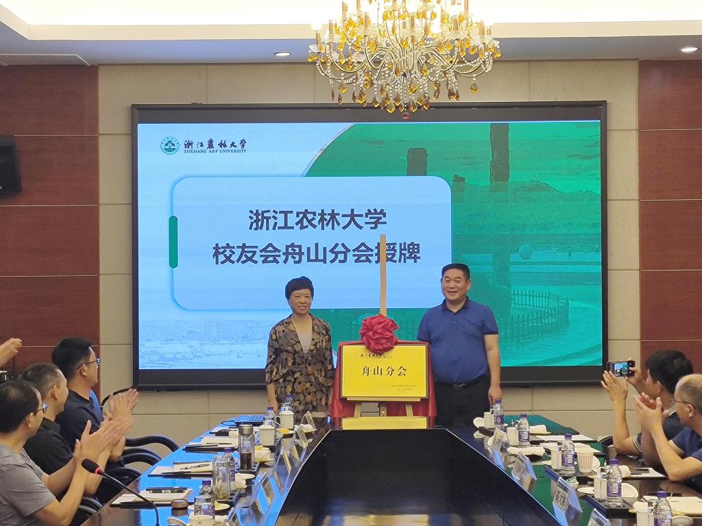7月24-25日,校党委副书记施美红带队走访舟山地区校友,并给五个校友分会授牌。舟山市卫健委老龄健康处一级主任科员、林学81级校友郑意胜,上海三盛宏业集团有限公司总裁、林业经济管理87级校友蒋万琪,舟山市纪委、监委二级调研员、林学91级校友胡国华,舟山市定海区政协副主席、木材加工与利用92级校友陆翰凯,舟山人民政府驻上海联络处岱山工作处处长、林学95级校友童永波等20余人参加活动。动科动医学院相关负责人等陪同走访。