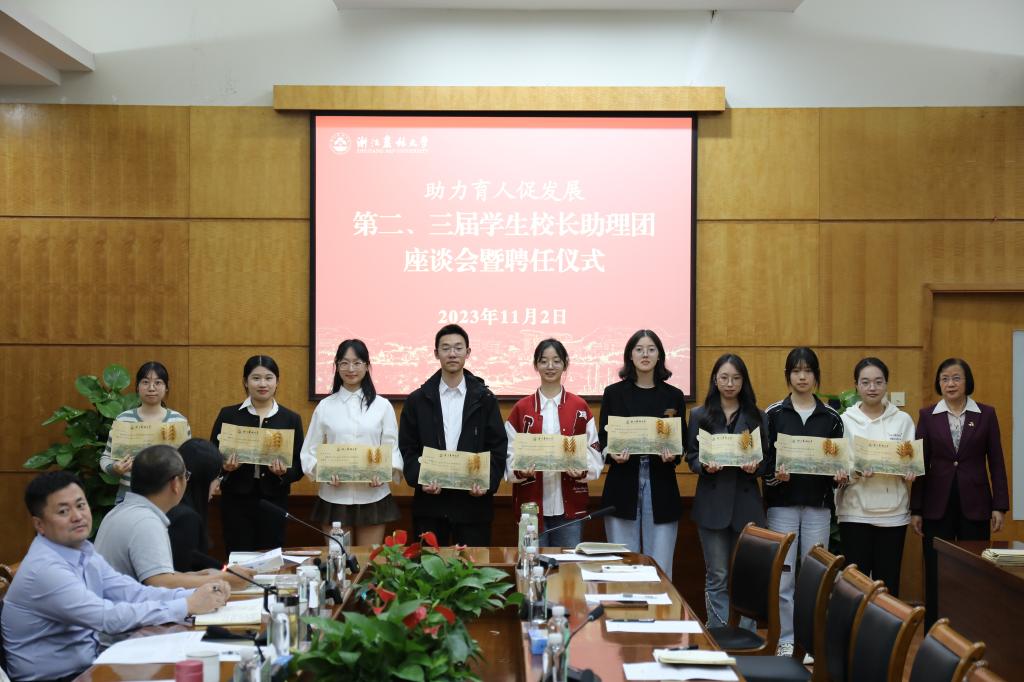 11月2日,第二、三届学生校长助理团座谈会暨聘任仪式召开。副校长沈月琴出席会议并与学生进行了交流,第二、三届学生校长助理团全体成员和相关职能部门负责人参会。