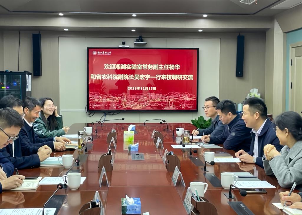 11月15日,湘湖实验室常务副主任杨华、省农科院副院长吴宏宇一行来校调研交流,副校长徐爱俊陪同。