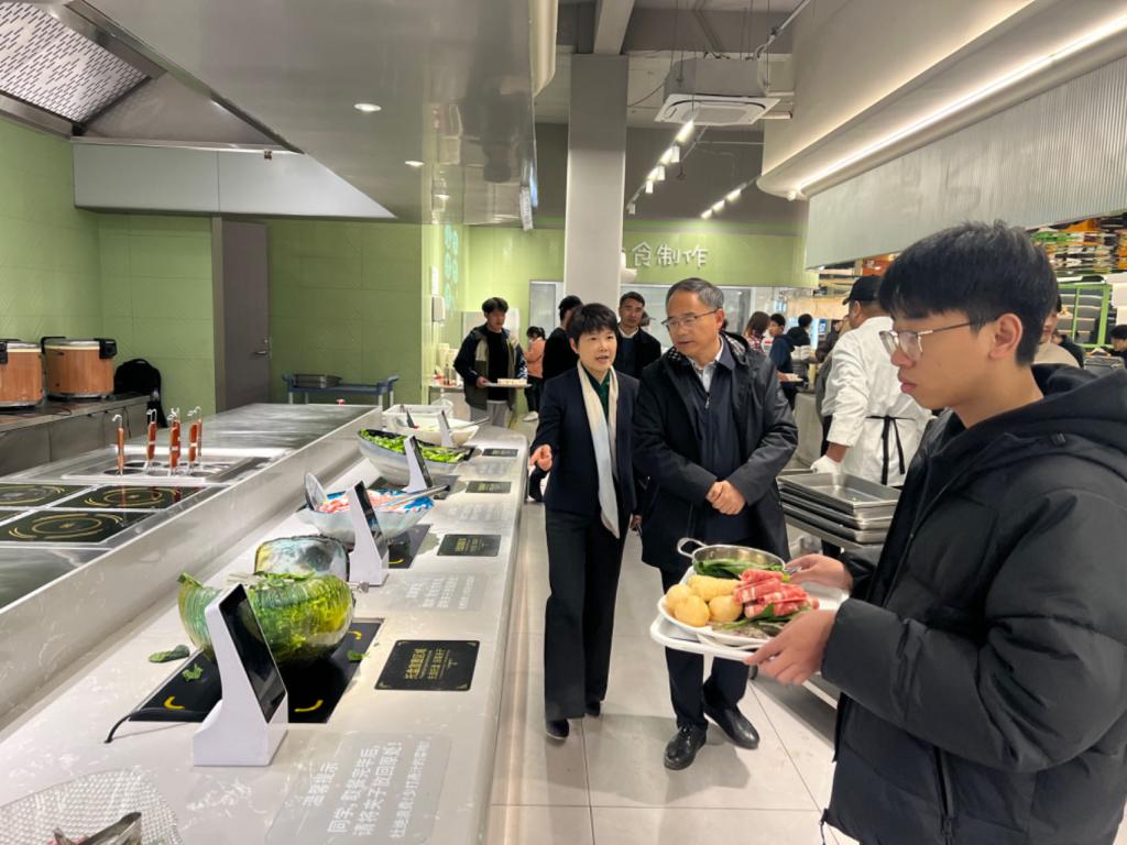会后,调研组一行实地参观了两高校学生公寓、食堂、师生服务中心等场所。