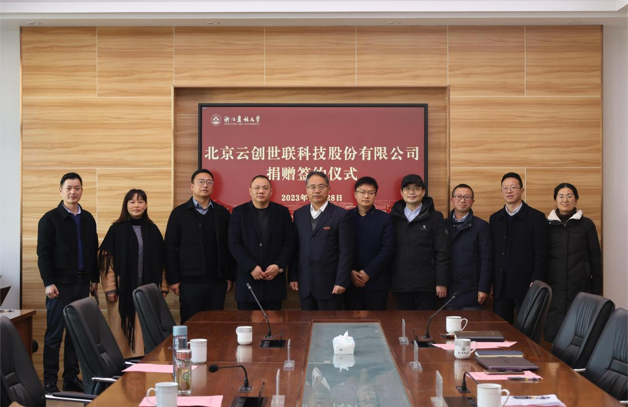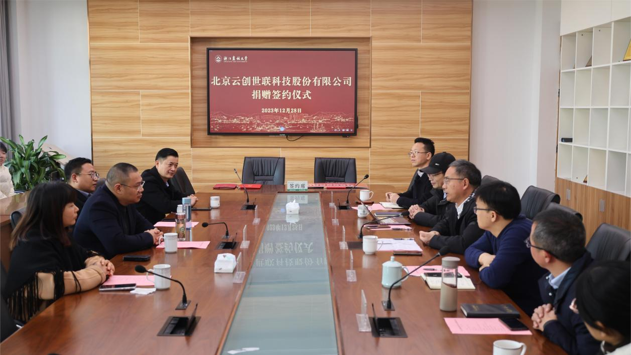 12月28日,北京云创世联科技股份有限公司捐赠签约仪式在学11-304举行。北京云创世联科技股份有限公司总经理姚欣荣一行,学校副校长、基金会副理事长胡祖吉,数计学院党政领导班子出席仪式。